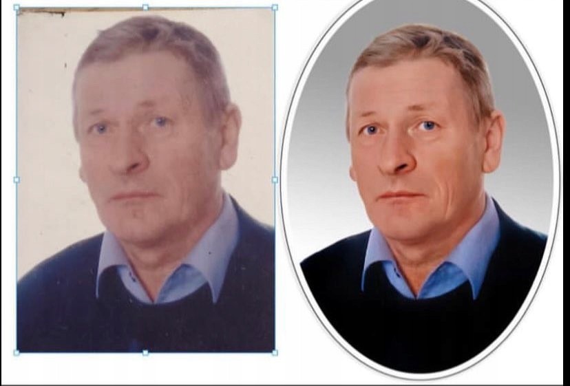 - kadrowanie i prostowanie zdjęcia, dorabianie ubytków, usuwanie pieczątek i napisów